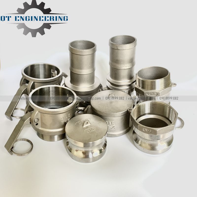 QT Engineering Co.,Ltd chuyên cung cấp khớp nối nhanh, khớp nối nhanh inox, khớp nối nhanh camlock bằng nhựa PP, khớp nối nhanh camlock bằng nhôm, khớp nối nhanh bằng inox, khớp nối nhanh camlock, khớp nối nhanh camlock inox, khớp nối nhanh camlock inox kiểu A, khớp nối nhanh camlock inox kiểu B, khớp nối nhanh camlock inox kiểu C, khớp nối nhanh camlock inox kiểu D, khớp nối nhanh camlock inox kiểu E, khớp nối nhanh camlock inox kiểu F, khớp nối nhanh camlock inox kiểu DC, khớp nối nhanh camlock inox kiểu DP, khớp nối nhanh thủy lực, khớp nối nhanh ống nước, khớp nối nhanh đuôi chuột PCCC, khớp nối nhanh ren trong, khớp nối nhanh ren ngoài, khớp nối nhanh inox kiểu Clamp, khớp nối nhanh inox xăng dầu, khớp nối nhanh inox cứu hỏa,… với mọi chủng loại, mọi kích cỡ theo yêu cầu của khách hàng.